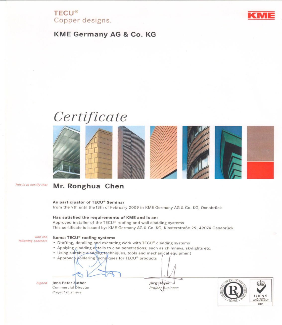 成都翔佑建筑裝飾工程有限公司作為一家專業(yè)的金屬屋面及外墻系統(tǒng)集成供應商,多年來一直******于相關(guān)建筑材料高新領(lǐng)域的開拓,基于對建筑創(chuàng)新理念的深刻理解和豐富的世界******技術(shù),以及材料的信息來源,我們不斷地從國外引進了許多適合我國建筑實際情況的新型建材和技術(shù),專注金屬薄板外墻及屋面系統(tǒng)裝飾,******國外技術(shù)為建筑表皮增添新的色彩,造就新的建筑風潮,成就金屬薄板外墻屋面建筑浩蕩百年載。金屬薄板類:德國KME建筑銅板:德國萊茵辛克鈦鋅板:德國萊茵辛克鈦鋅板:法國VM-ZINC鈦鋅板:國產(chǎn)******鋁鎂錳板。